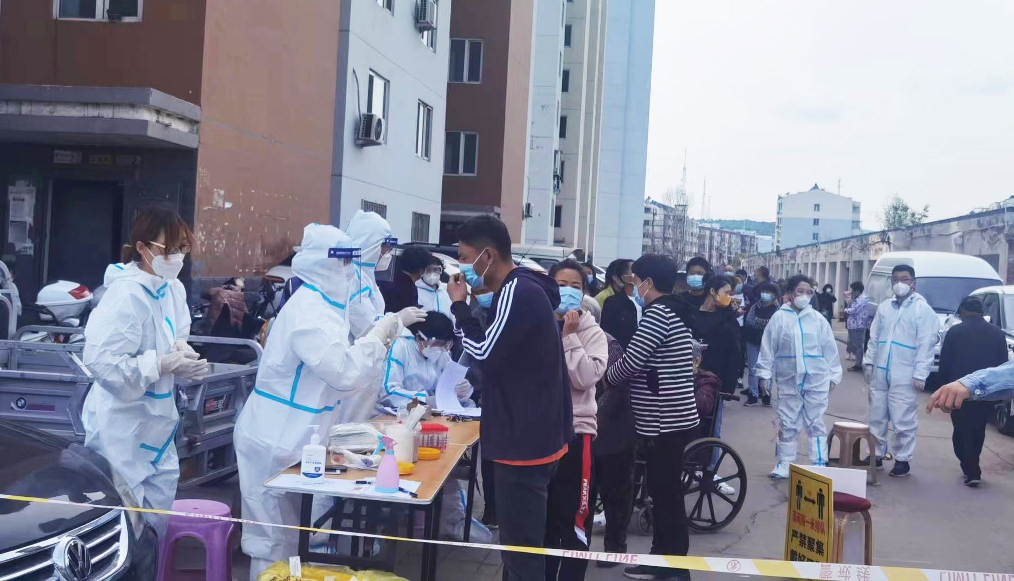 “‘白加黑’干出‘加速度’”。5月11日,下沉干部按照安排部署,迅速行動,按照社區(qū)安排,分成3組,分區(qū)域?qū)Τ需F家園、御龍頤景小區(qū)進(jìn)行全員核酸檢測。由于社區(qū)屬于老舊小區(qū),流動人口較多,信息統(tǒng)計不完全,核酸檢測白天時間難以完成,考慮到核酸檢測每滯后一分鐘就會多一分風(fēng)險,隊員主動擔(dān)當(dāng),發(fā)揮出黨員先鋒模范和示范引領(lǐng)作用,持續(xù)排查到晚上12點多,全部完成2個小區(qū)3個點位2200余人的核酸檢測。同時,由于社區(qū)老人較多,無法親自到核酸檢測點進(jìn)行核酸檢測,李大林等隊員為了確保做到全員核酸檢測,克服小區(qū)電梯無法使用的困難,一戶一戶的爬樓梯入戶檢測,直到凌晨2點,才拖著疲憊的身軀返回駐地。