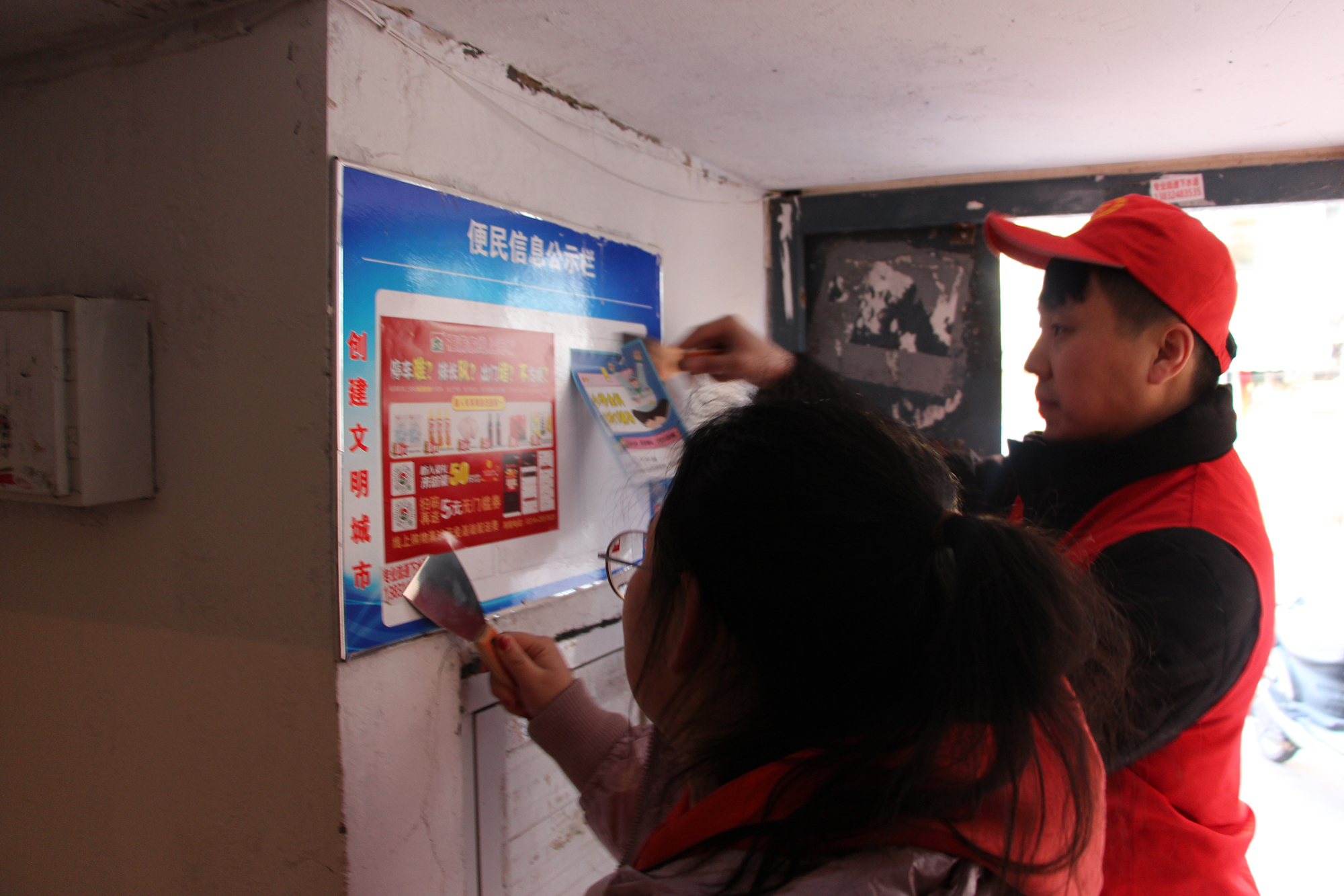 會后,集團(tuán)公司與會龍山社區(qū)積極對接,安排人員分批次深入會龍山社區(qū),與社區(qū)書記現(xiàn)場溝通并安排部署幫建工作。志愿者們向社區(qū)居民發(fā)放黨的二十大精神宣傳手冊、對轄區(qū)內(nèi)消防設(shè)施進(jìn)行清潔檢查、單元樓內(nèi)外非法廣告進(jìn)行清除、對非機(jī)動車進(jìn)行合理擺放、樓內(nèi)外堆放垃圾雜物上門進(jìn)行溝通,向居民講解雜物堆積的潛在危害,進(jìn)一步提升了社區(qū)居民的文明意識。